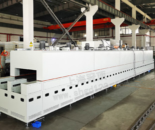 隧道烘箱與標(biāo)準(zhǔn)型烘箱相比,其優(yōu)點(diǎn)在于自動(dòng)的加熱干燥,可連續(xù)性使用。隧道烘箱主要分為三個(gè)部分,即進(jìn)料區(qū)、烘干區(qū)、出料區(qū)。其工作原理如下: 一、進(jìn)料區(qū): 產(chǎn)品進(jìn)入烘干區(qū)前,放置產(chǎn)品的地方,其長(zhǎng)度為500mm-1000mm左右。產(chǎn)品通過(guò)隧道烘箱進(jìn)料區(qū)自動(dòng)進(jìn)入第二部分的烘干區(qū)進(jìn)行加熱、干燥等熱處理作業(yè)。 二、烘干區(qū): 主要是由框架、鼓風(fēng)電機(jī)、加熱管、箱體四部分組成。兩層箱體之間填充保溫隔熱材料。可持續(xù)不間斷地烘烤,提高產(chǎn)品生產(chǎn)效率。多段獨(dú)立PID溫度控制,爐內(nèi)溫度均勻。輸送線速度變頻調(diào)速,調(diào)節(jié)自如,運(yùn)行平穩(wěn),生產(chǎn)效率高。 三、出料區(qū): 按需可加裝散熱風(fēng)扇,使烘干區(qū)的產(chǎn)品加速冷卻,以便下一流程的作業(yè)。 四、輸送線部分: 網(wǎng)帶、板鏈輸送線兩側(cè)配有傳動(dòng)鏈條,解決運(yùn)輸過(guò)程中跑偏的現(xiàn)象。隧道烘箱是分段式加熱,獨(dú)立電箱控制、操作方便。結(jié)構(gòu)主要由輸送系統(tǒng)與烘干爐兩大部分組成。
