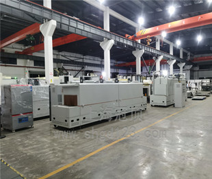 輸送式固化爐的維修及點檢保養(yǎng)部位:1、輸送傳動部位:定期潤滑各傳動部位,緊固各部位,可選用40#潤滑油(視生產(chǎn)工藝允許)。 部位:馬達出力軸鏈輪、鏈條;輸送帶鏈輪、鏈條2、張緊部位:位于出料口大梁兩側(cè),每月定期緊固潤滑。3.電流電壓表,三相電壓顯示是否正常,三相電流是否顯示正常,是否實時跳動變化(注意:在加熱情況下)。4.變頻器控制面板,頻率是否顯示正常(用戶目標(biāo)值),是否有故障碼。5.更換加熱管:人工打開發(fā)熱管蓋,替換故障加熱管。注意:須斷電,有資質(zhì)的電氣人員才能操作。